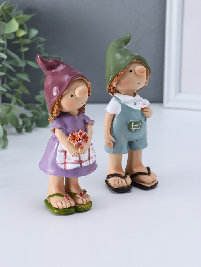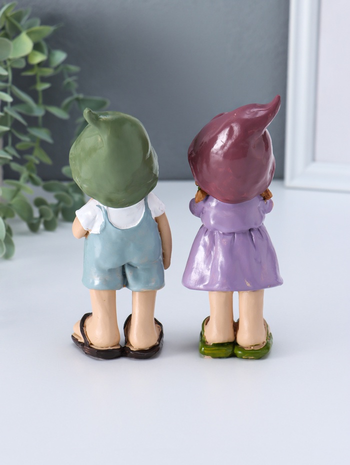Сувенир полистоун "Малыши в длинных колпаках, с ромашками" набор 2 шт 4х5,3х15 см