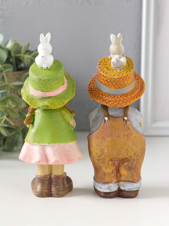 Сувенир полистоун "Малыши в соломенных шляпках, с зайчатами" набор 2 шт 5,5х6х14 см
