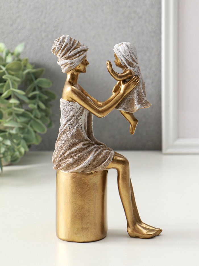 Сувенир полистоун "Мама с малышом - после водных процедур" 5,5х11х19 см