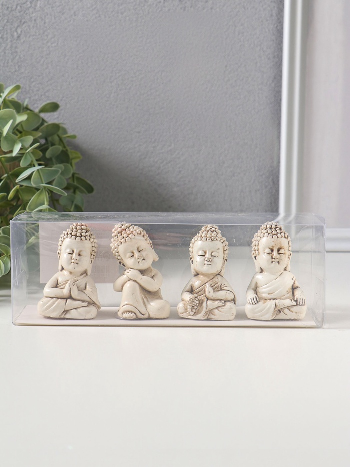 Сувенир полистоун "Медитация маленького Будды" набор 4 шт беж 3х3,5х6 см