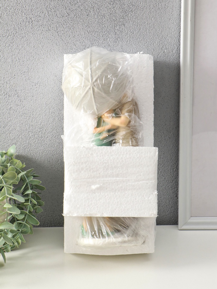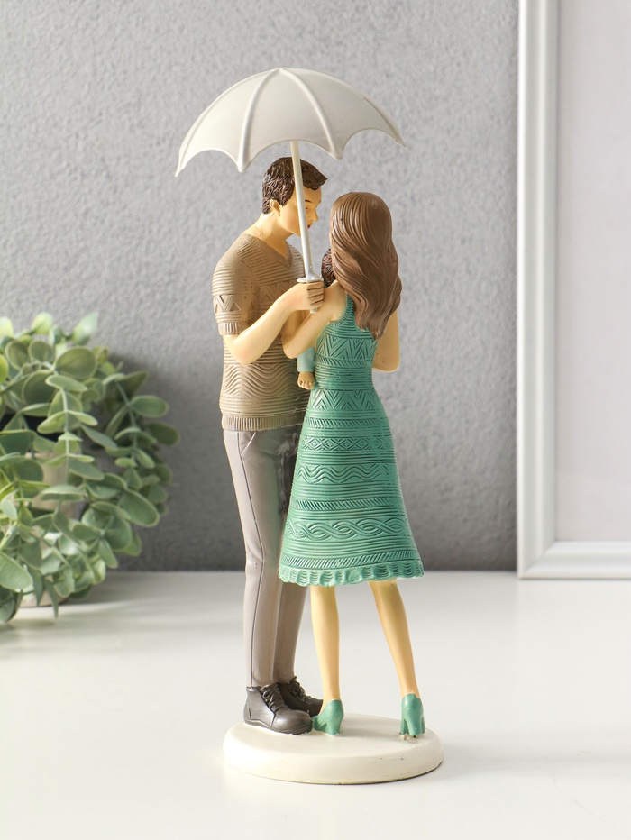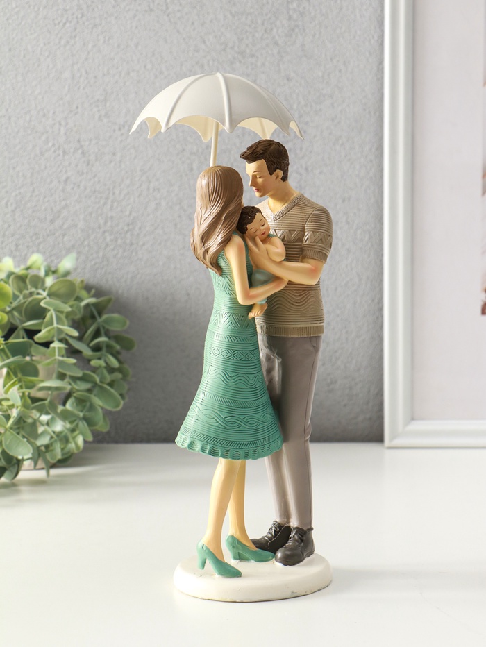 Сувенир полистоун "Папа, мама и малыш в вязанных нарядах, под зонтом" 8,5х9,5х25,5 см