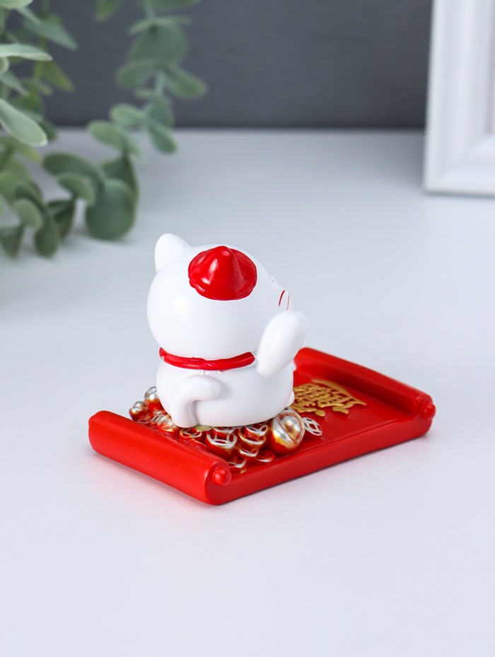 Сувенир полистоун подставка под телефон "Манэки-нэко с золотым слитком" 5,8х8,5х6,5 см