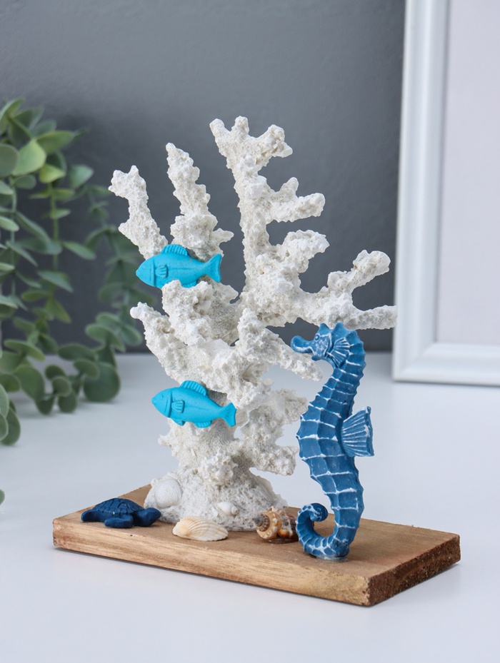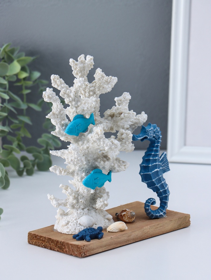 Сувенир полистоун "Рыбки и морской конёк у белых кораллов" 7,5х15,7х19,5 см