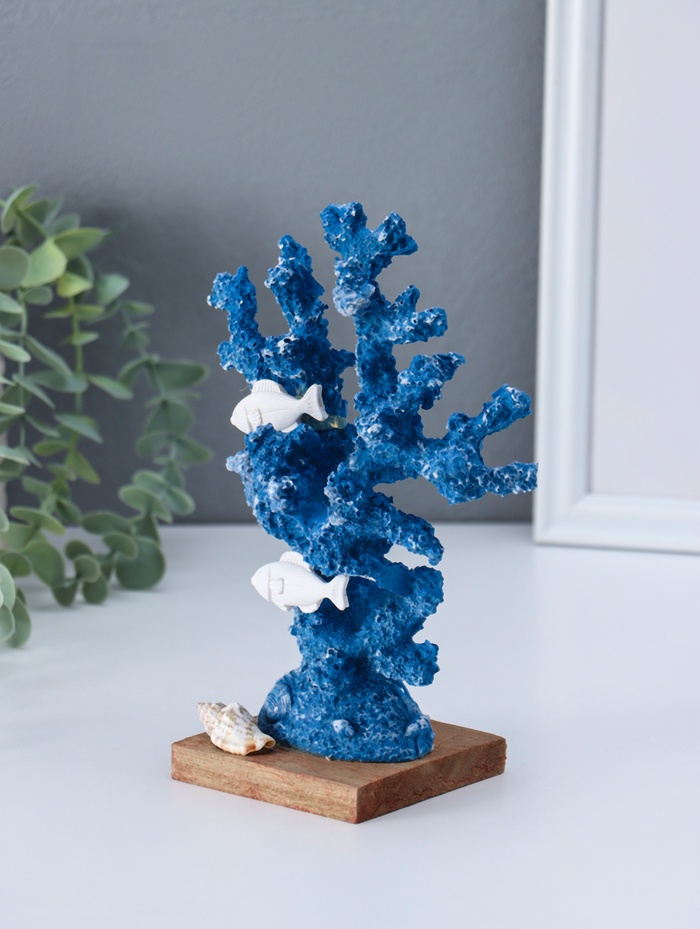 Сувенир полистоун "Рыбки у синих кораллов" 6,5х14х19,5 см