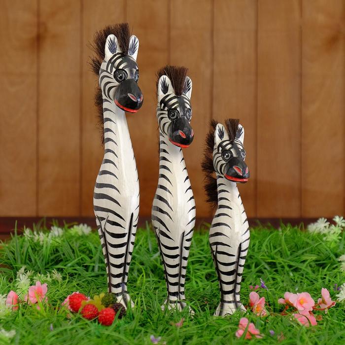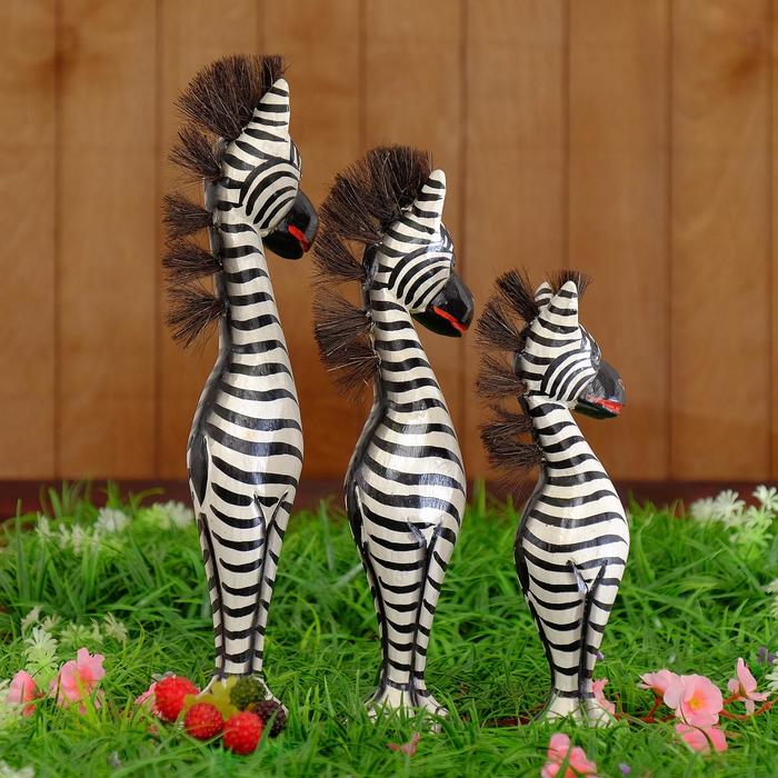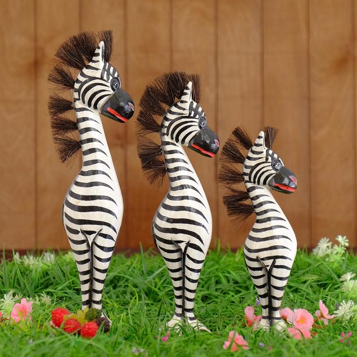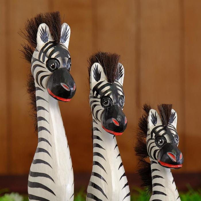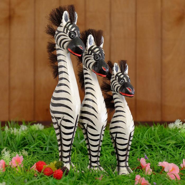 Зебра всегда считалась символом жизненной гармонии, из-за ее уникального окраса. Поэтому такой сувенир «Семейство зебр», набор 3 шт., h=40 см, h=35 см, h=30 см, дерево станет замечательным подарком в знак пожелания гармонии в семье и на работе. Неспроста в Индонезии считается традицией иметь у себя «в арсенале» различные фигурки, олицетворяющие что-то хорошее.