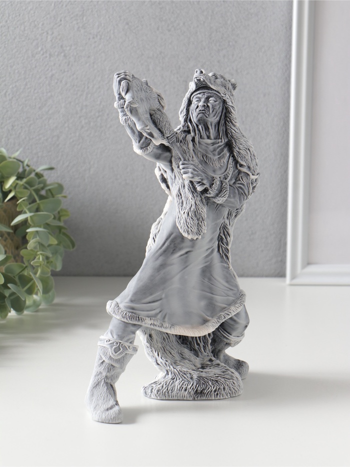 Сувенир "Шаман в шкуре медведя с бубном" большой, 25см