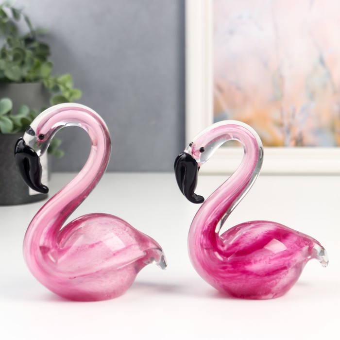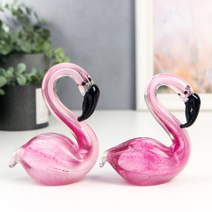 Сувенир стекло "Фламинго" под муранское стекло набор 2 шт 12х6х20 см