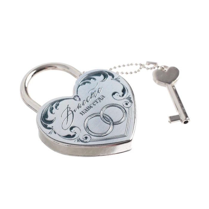 Замок для торжественной свадебной традиции - это символ любви. Навесной замок любви на свадьбе становится символом нерушимого союза, заключенного влюбленными в этот день. По традиции замок вешается на мост, загадывается желание о счастливой семейной жизни, а ключи от него выбрасываются в реку, через левое плечо. Это делается для того, чтобы никто никогда не смог открыть этот замок и нарушить клятву, данную влюбленными. Свадебный замок можно повесить на мост по традиции или на дерево в специалных парках или аллеях молодожен, которые есть во многих городах. Замок навесной свадебный имеет в комплекте ключик, замок закрывается и открывается. Традиция закрывать замок на свадьбу объединяет сердца мужа и жены навсегда. Свадебный декоративный замочек будет отлично смотреться на фотосессии и видео.