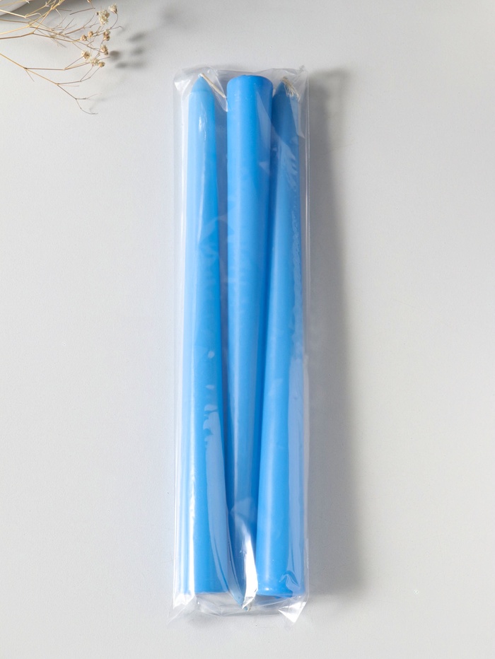 Свеча античная 25 см (набор 3 шт) 58 гр, 7 ч, цв. пастельно-голубой