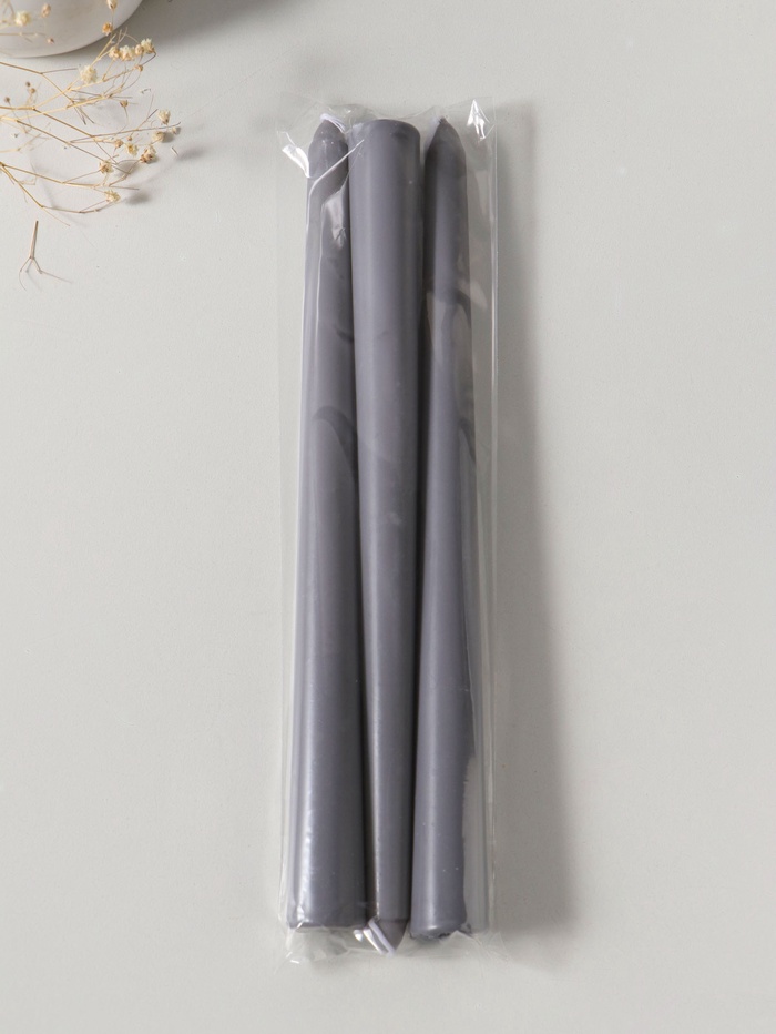 Свеча античная 25 см (набор 3 шт) 58 гр, 7 ч, цв. серый