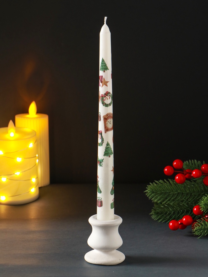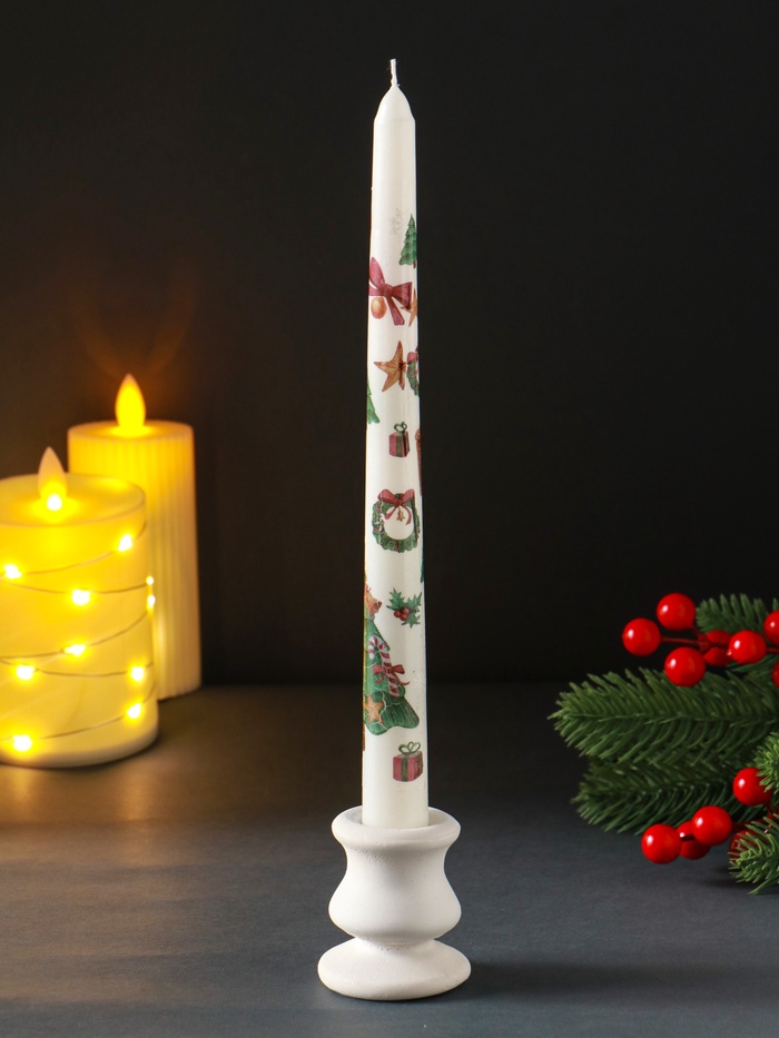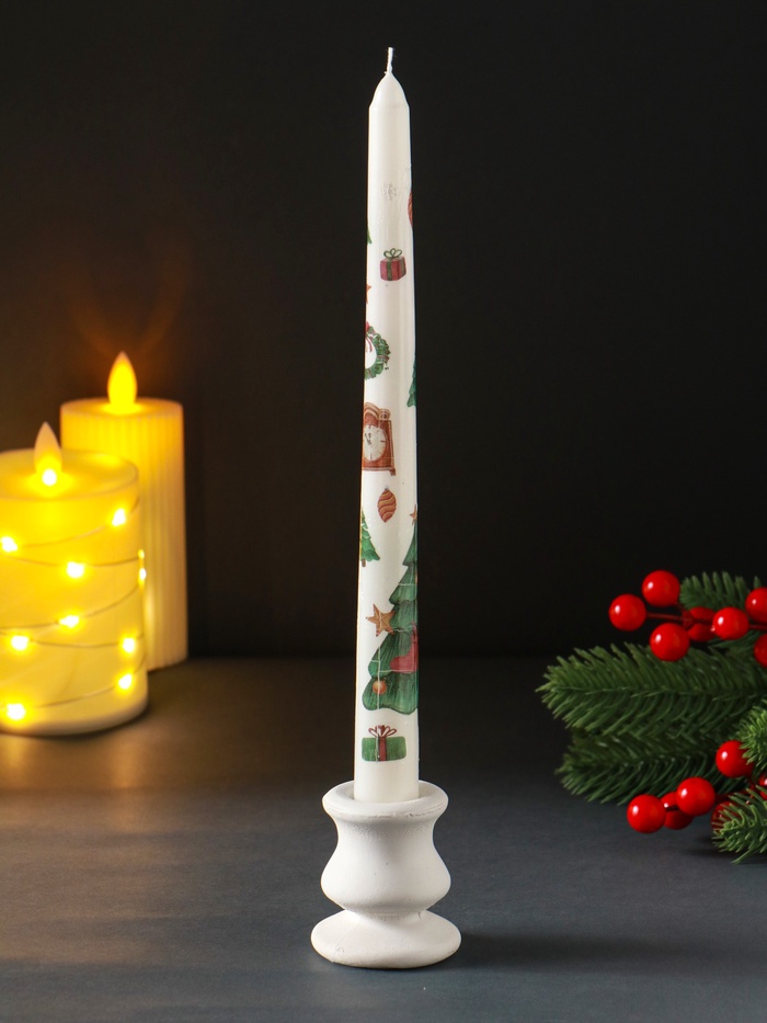 Эта высокая белая свеча создаёт атмосферу праздника, напоминая о классических рождественских украшениях. Её стройный силуэт и чистый цвет привносят в дом ощущение уюта и спокойного ожидания чуда.