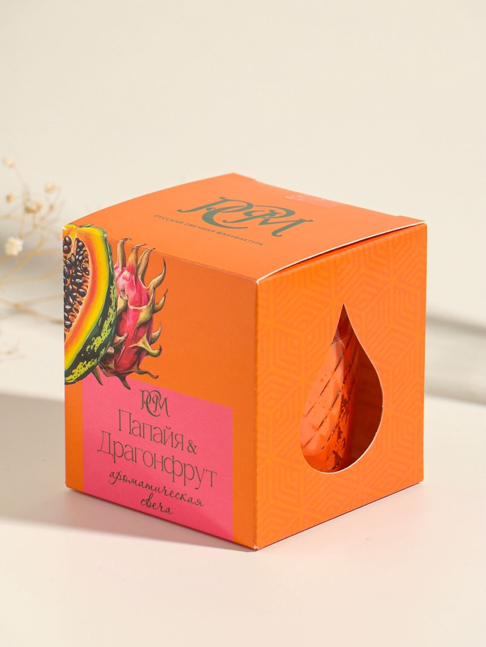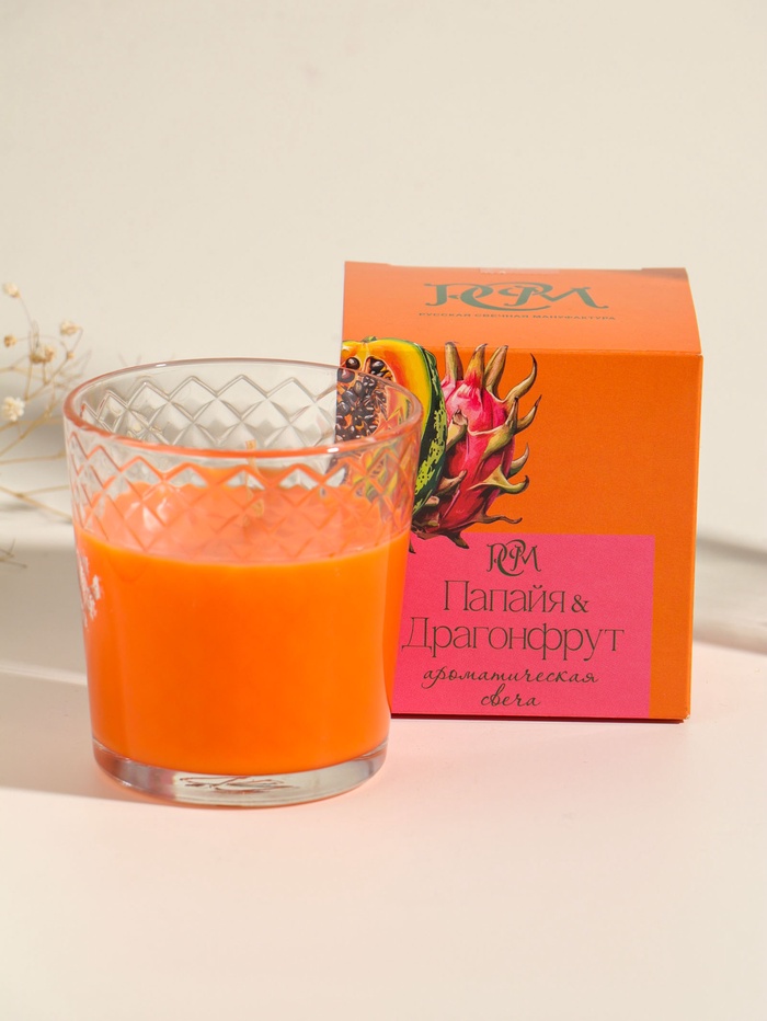 Свеча ароматическая в стакане "Папайя и драгонфрукт" 8х8,5 см, 30 ч