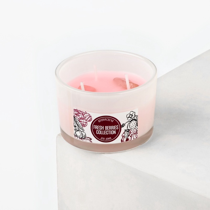 Создайте праздничную атмосферу в своем доме с ароматической свечой в стеклянной банке «Fresh» с натуральными камнями: ягодами!