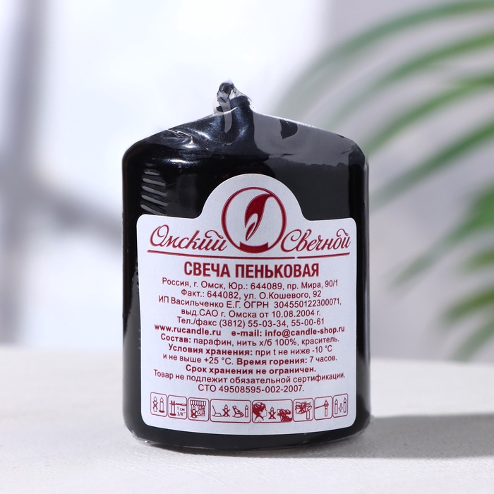 Свеча - цилиндр, 4×5 см, 7 ч, 47 г, чёрная