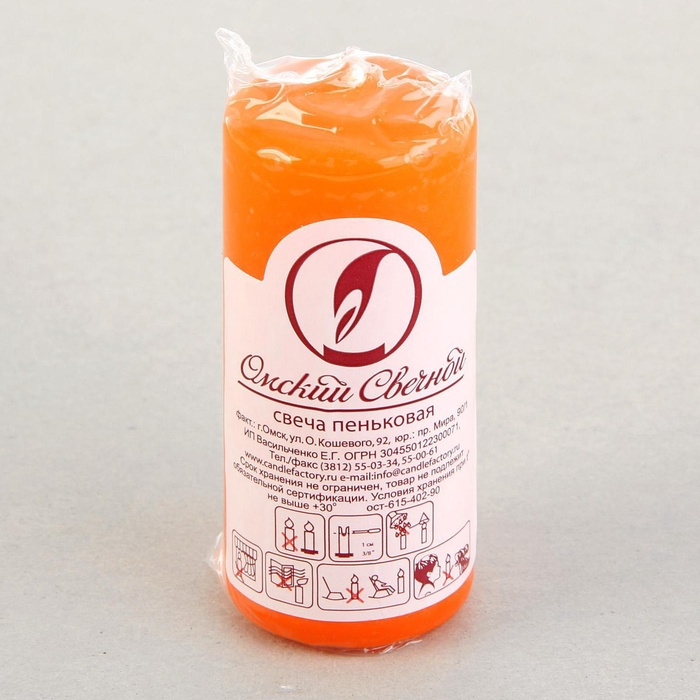Свеча - цилиндр, 4×9 см, 11 ч, 90 г, оранжевая