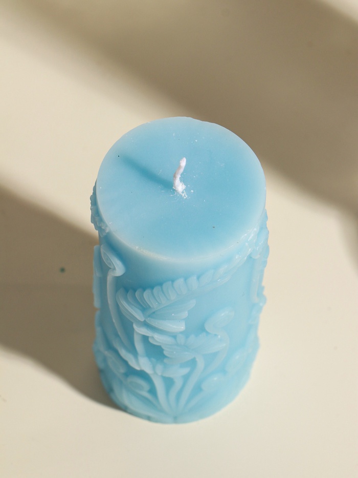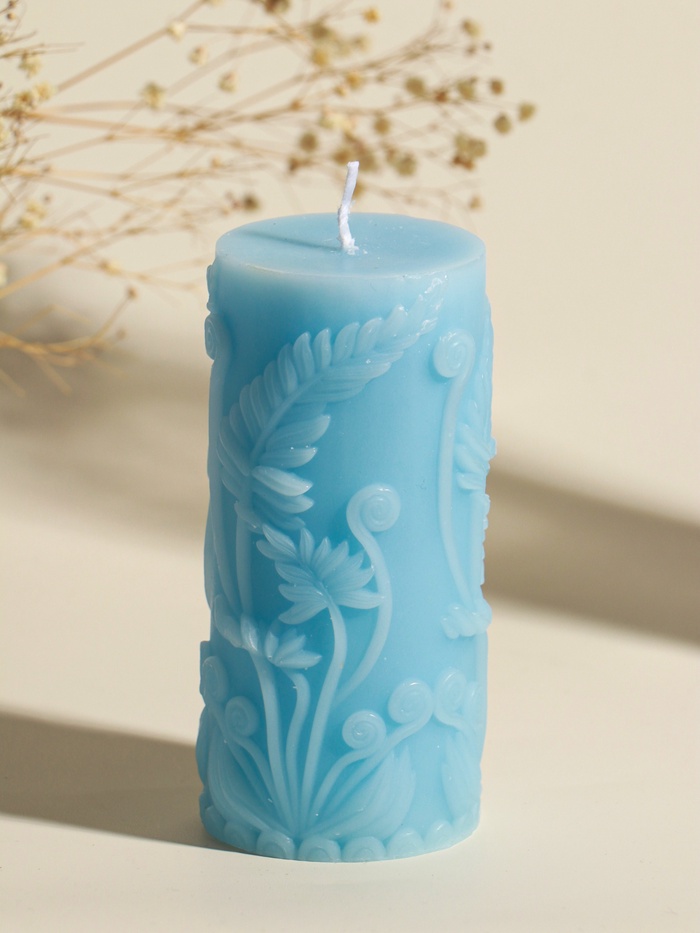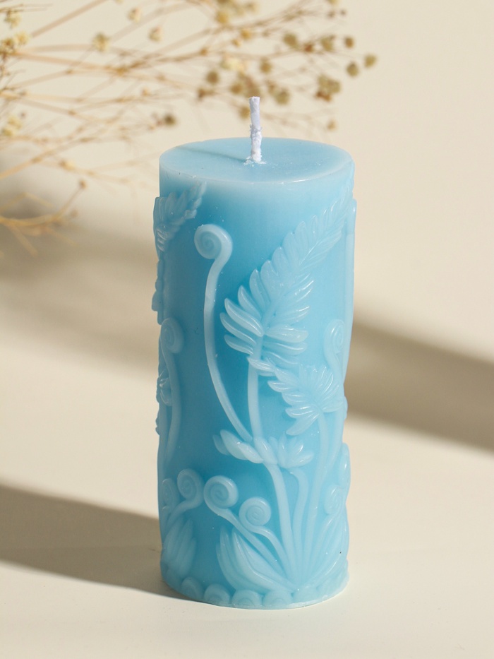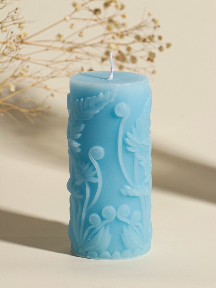 Свеча-цилиндр декоративная «Столбик. Экзотические растения», нежно-голубая, 5×5×11.7 см