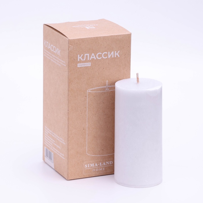 Свеча-цилиндр гладкая, Sima Home, 6×10 см, пальмовый воск, белая, 20 ч