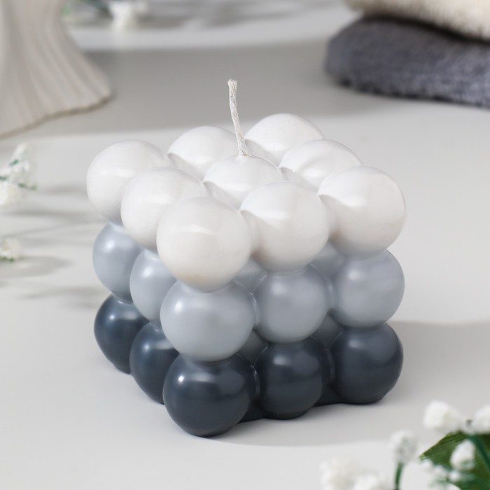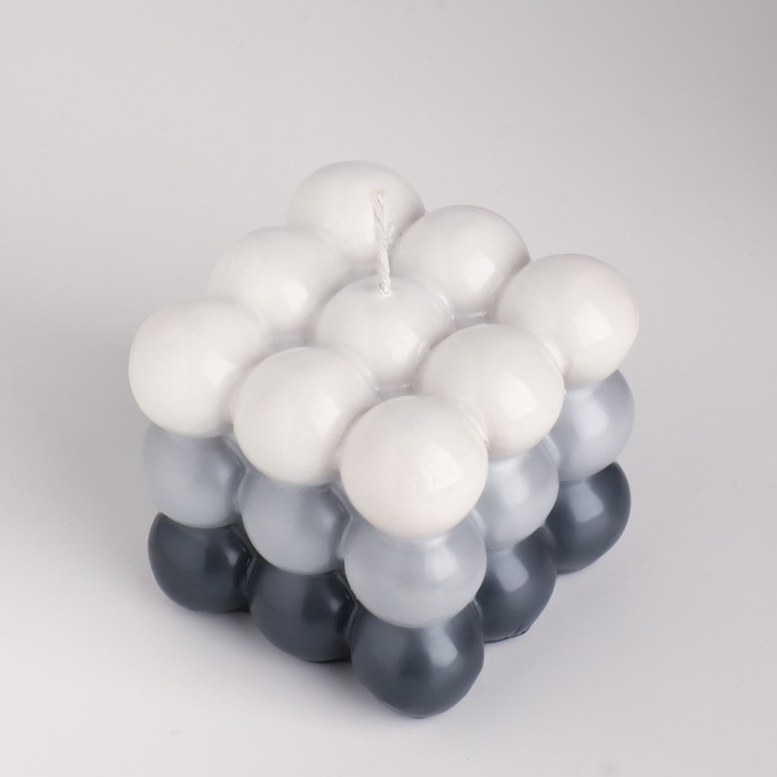 Свеча декоративная «Бабл куб», 6 см, бело-серая