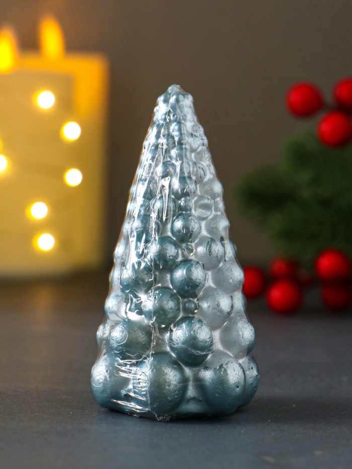 Эта изящная декоративная свеча, имеющая форму праздничного дерева, станет ярким акцентом в вашем интерьере. Она отличается небесно-голубым оттенком, который добавит каплю спокойствия и изысканности в современную или традиционную обстановку. Изготовленная из высококачественного парафина, свеча в форме «Ёлки» приятно радует глаз своей лаконичной текстурой без излишних деталей.
