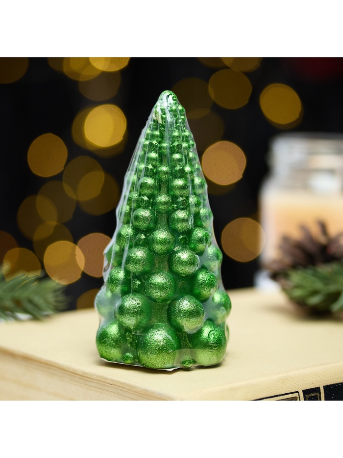 Свеча декоративная «Ёлка новогодняя из шаров», 50×100 мм, лак, зелёный