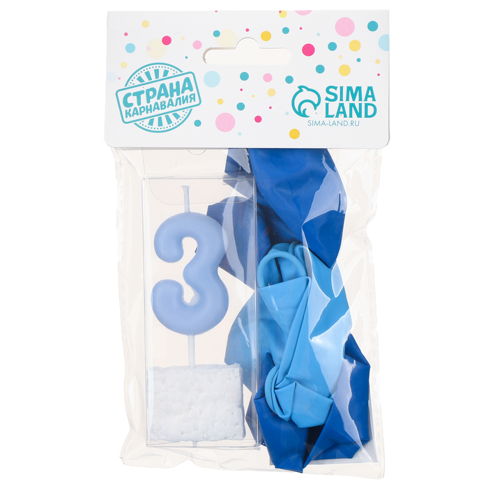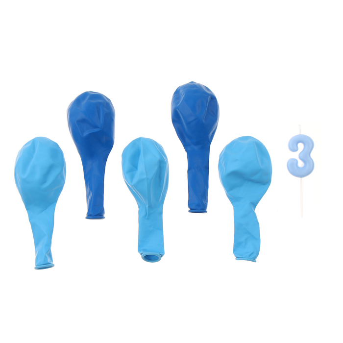 Свеча для торта, цифра 3 + воздушные шары, 5 шт, голубой