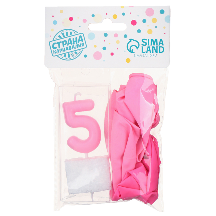 - Комплект включает 5 шариков — дополнение к свечке, которое позволяет украсить торт более оригинально.