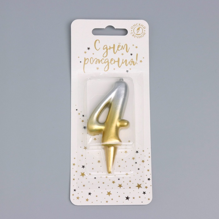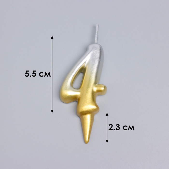 Свеча для торта цифра «Овал» 4, 5.5 см, золото-серебро