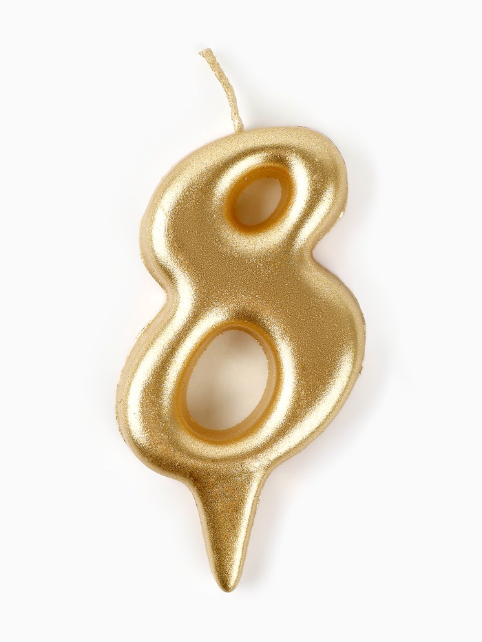 Свеча для торта цифра «Овал» золотая 8, большая, 5.5 см