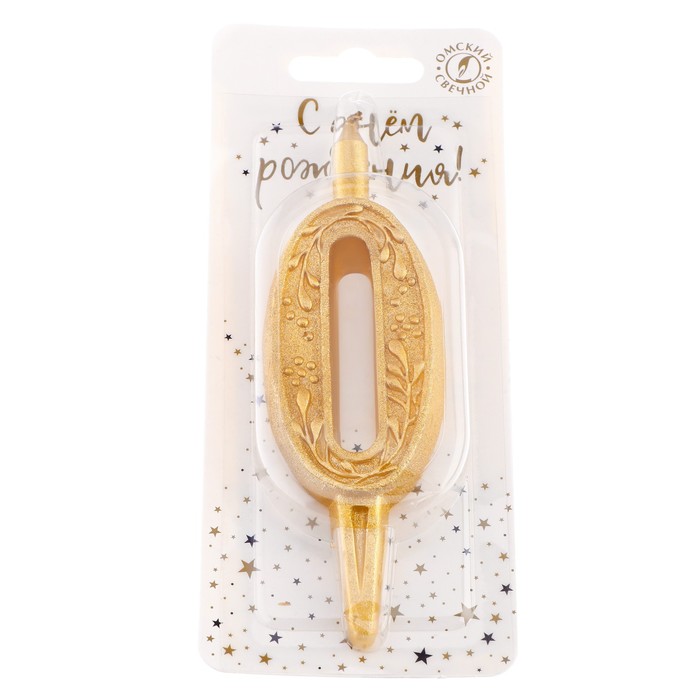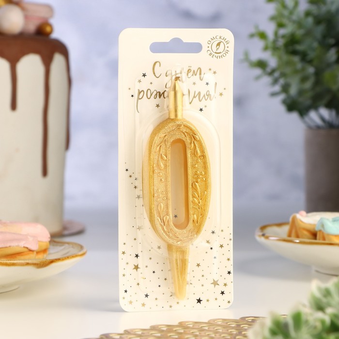 Свеча для торта цифра «Золотой узор», 10.2 см, цифра 0