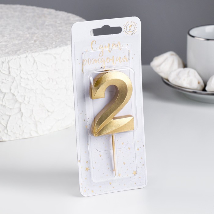 Свеча для торта на шпажке «Грань», 5.5 см, цифра 2, золотая