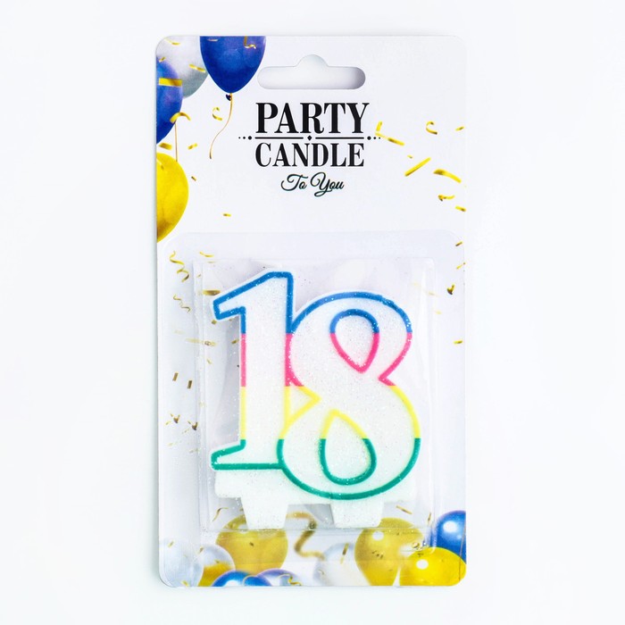 Свеча для торта «‎Юбилейный ГИГАНТ», цифра "18", ободок цветной, блёстки, 8 см