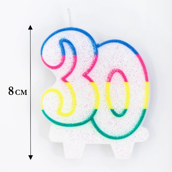 Свеча для торта «‎Юбилейный ГИГАНТ», цифра "30", ободок цветной, блёстки, 8 см