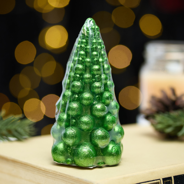 Свеча "Ёлка из шаров" 50*100 мм, лак, зелёный