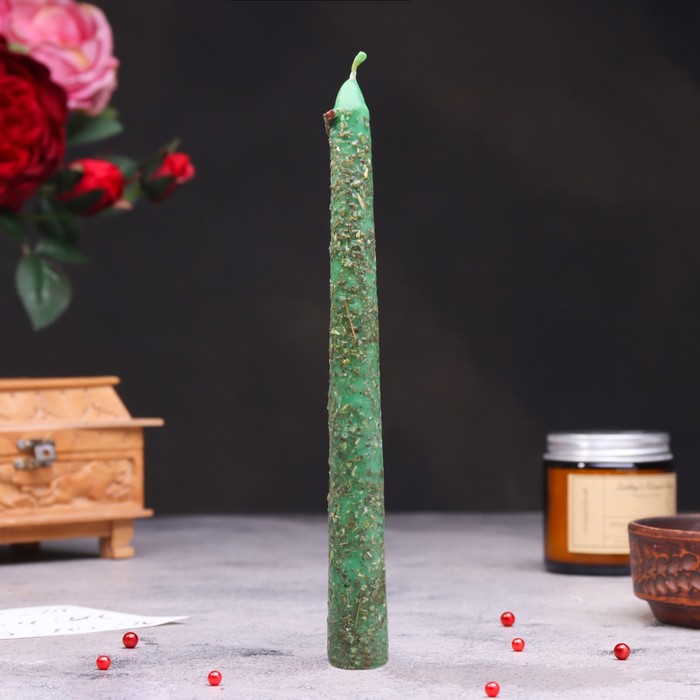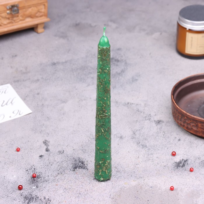 Цвет свечи играет важную роль. Зелёный подходит для обрядов денежной магии. Помогает в карьерном росте, достижении целей и материальной выгоды.