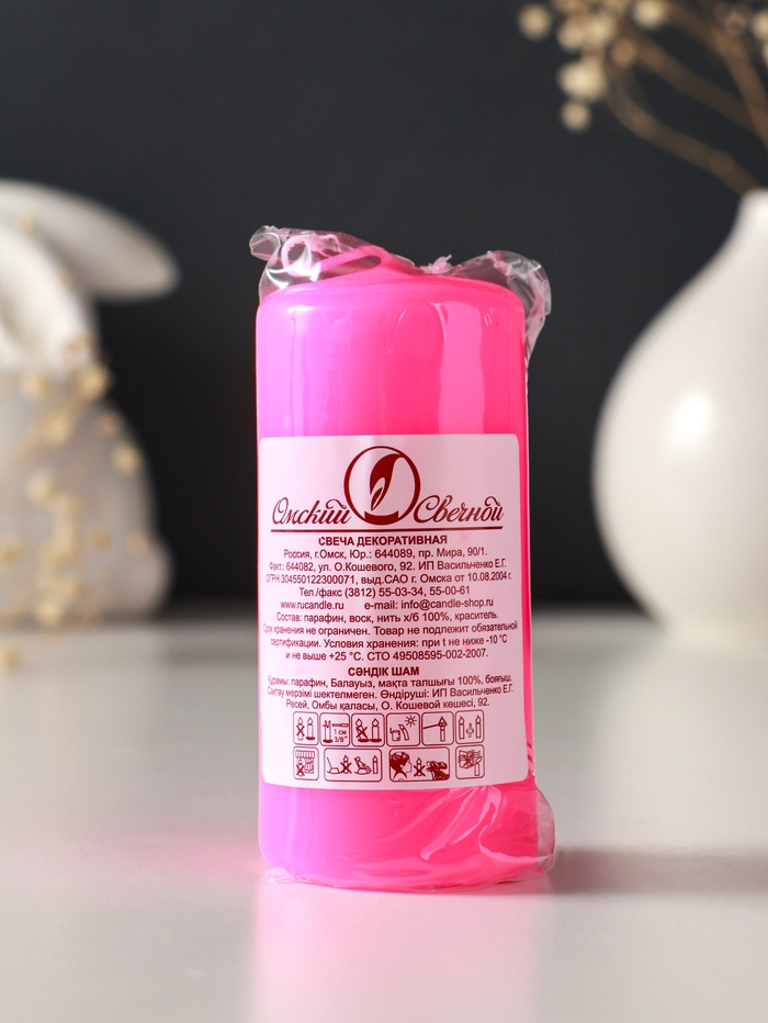 Свеча пеньковая 4×9 см, 11 ч, 90 г, розовый