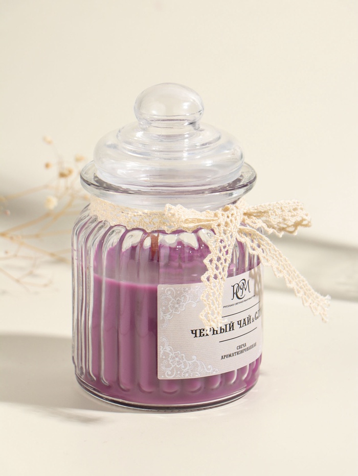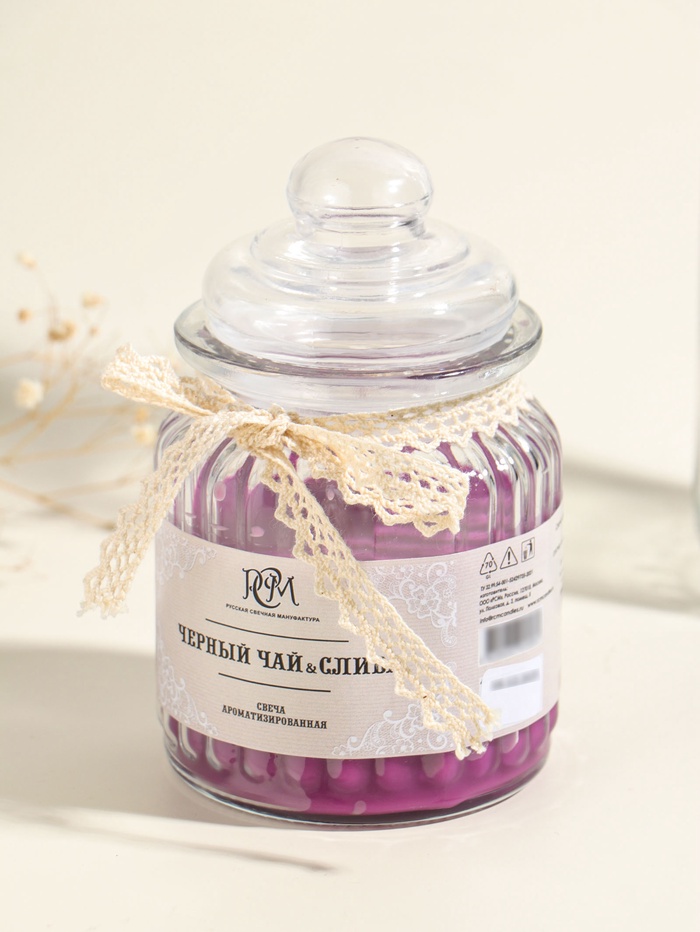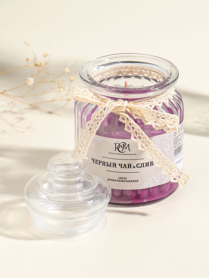 Свеча в банке ароматизированная "Чёрный чай и слива" 180 гр, 45 ч
