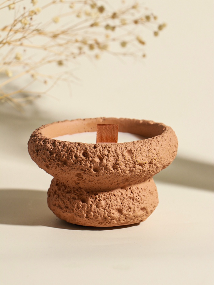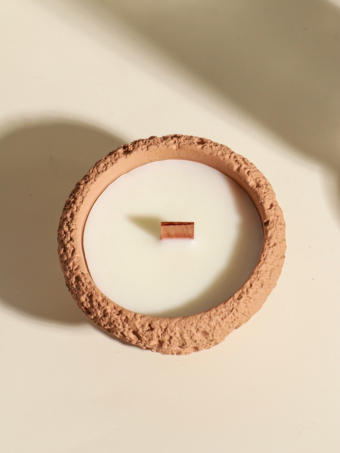Свеча в подсвечнике «Чаша», деревянный фитиль, персиковая, 9.3×9.3×5.5 см