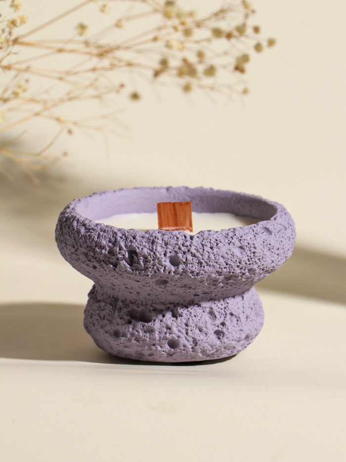 Свеча в подсвечнике «Чаша», деревянный фитиль, сиреневая, 9.3×9.3×5.5 см