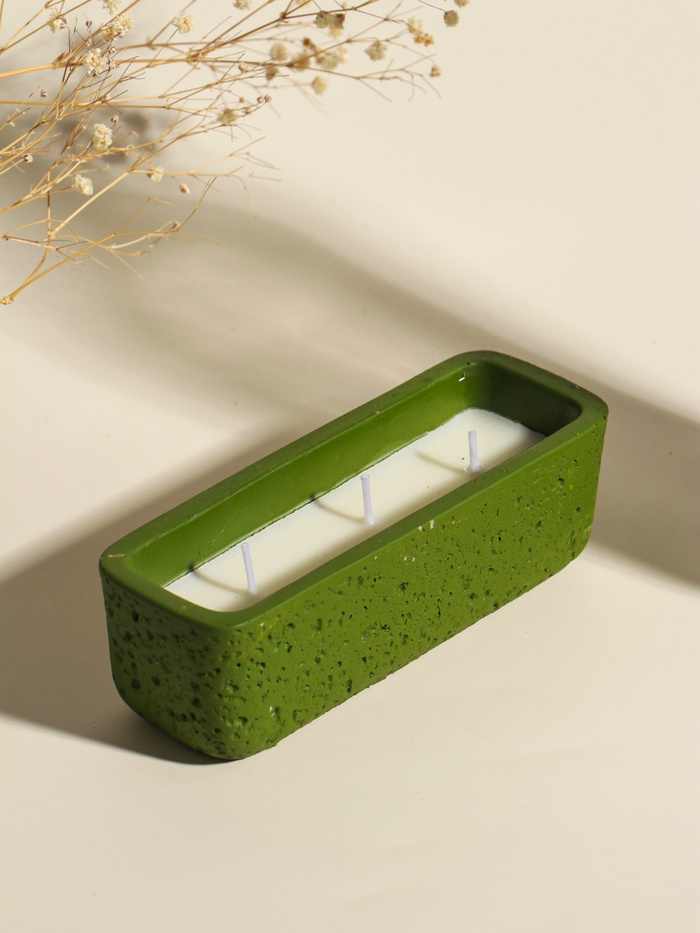Свеча в подсвечнике «Ящик», 3 хлопковых фитиля, зелёная 5.2×15×4.7 см