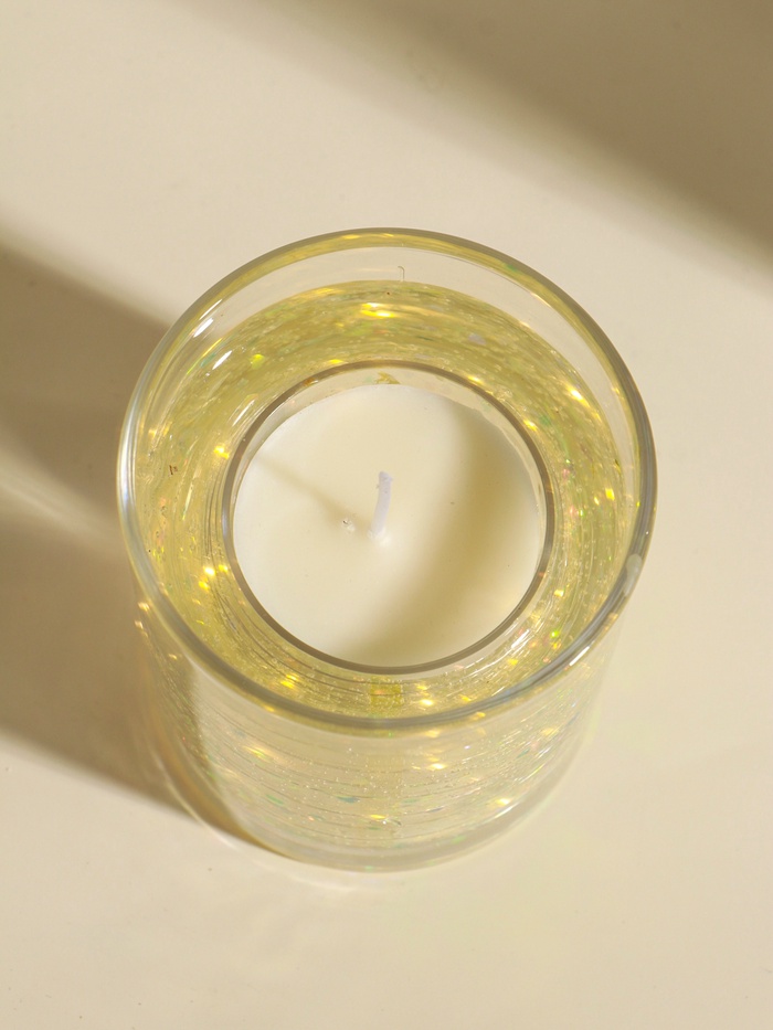 Свеча в стакане с LED-подсветкой «Перламутровые сердечки», 8×8×9 см