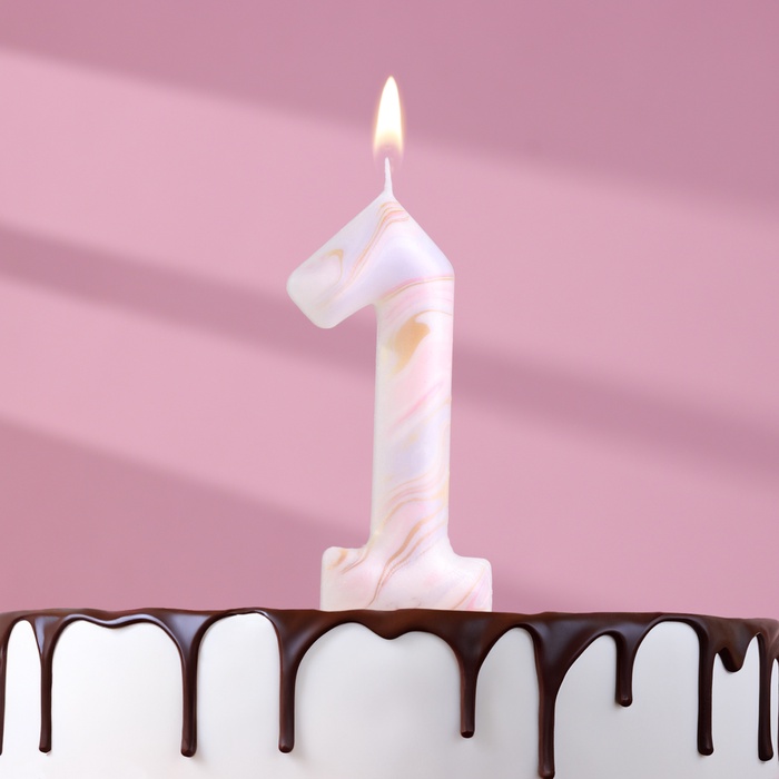 Свеча в торт "Белый мрамор", цифра "1", ГИГАНТ, 12,5 см