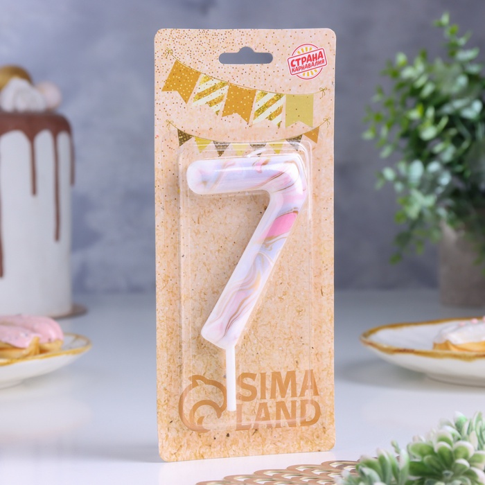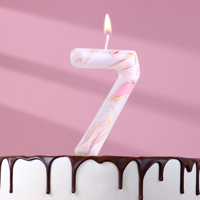 Свеча в торт "Белый мрамор", цифра "7", ГИГАНТ, 12,5 см