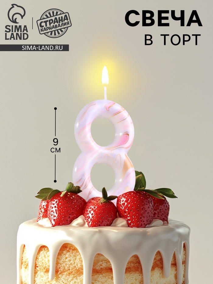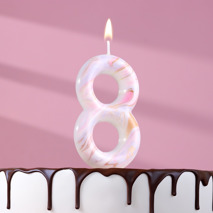 Свеча в торт "Белый мрамор", цифра "8", ГИГАНТ, 12,5 см