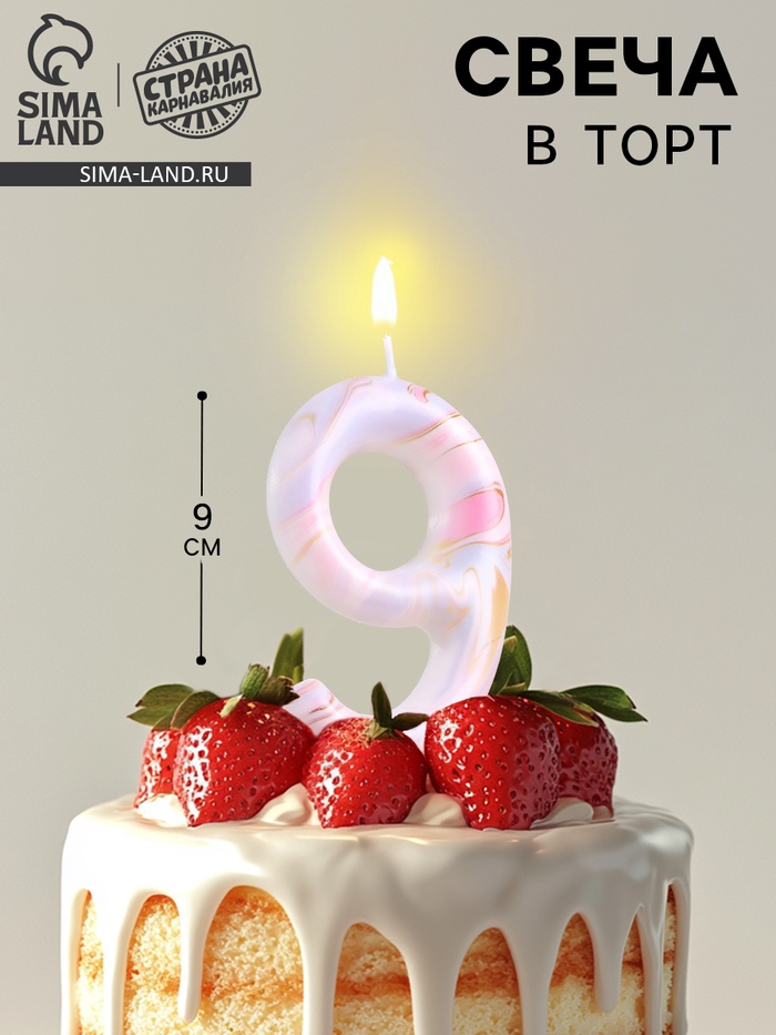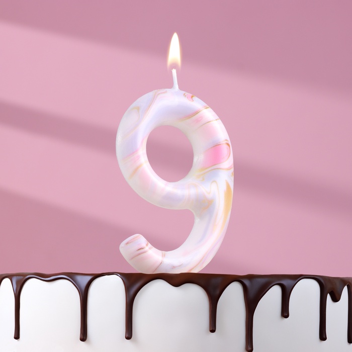 Свеча в торт "Белый мрамор", цифра "9", ГИГАНТ, 12,5 см