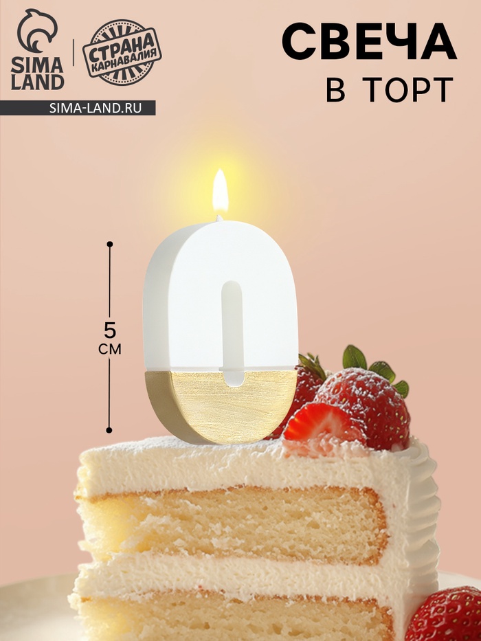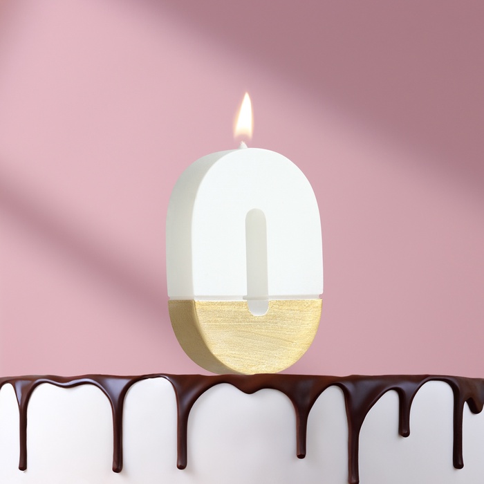 Свеча в торт "Манхеттен", цифра "0", белая с золотом, 5 см
