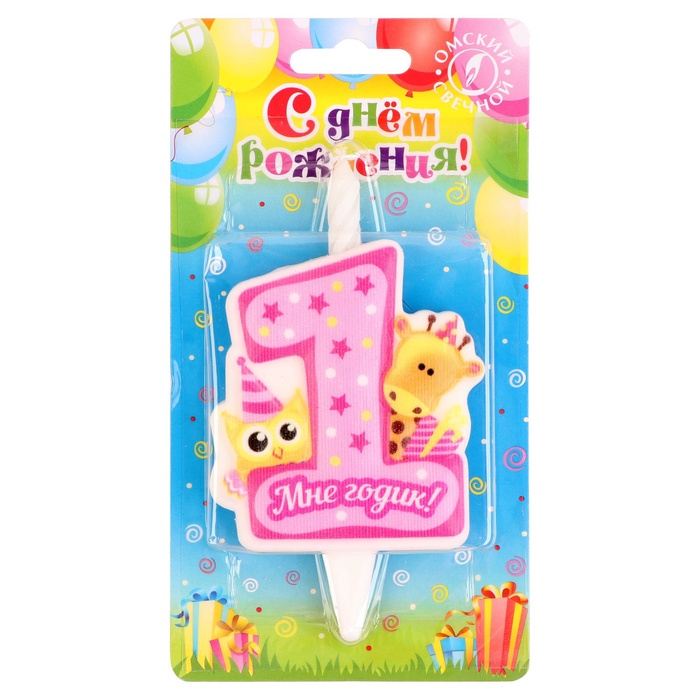 Свеча в торт «Мне годик!» с жирафом и совой, 9.7 см, 12 мин, 40 г