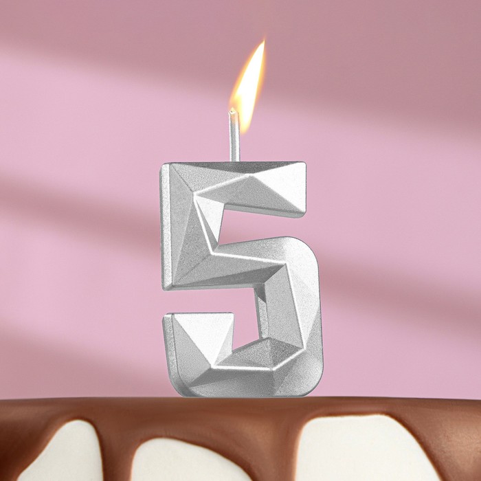 Свеча в торт на шпажке «Алмаз», цифра "5", серебряная, 4,8х2,6 см