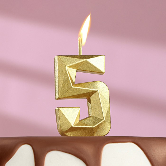 Свеча в торт на шпажке «Алмаз», цифра "5", золотая, 4,8х2,6 см