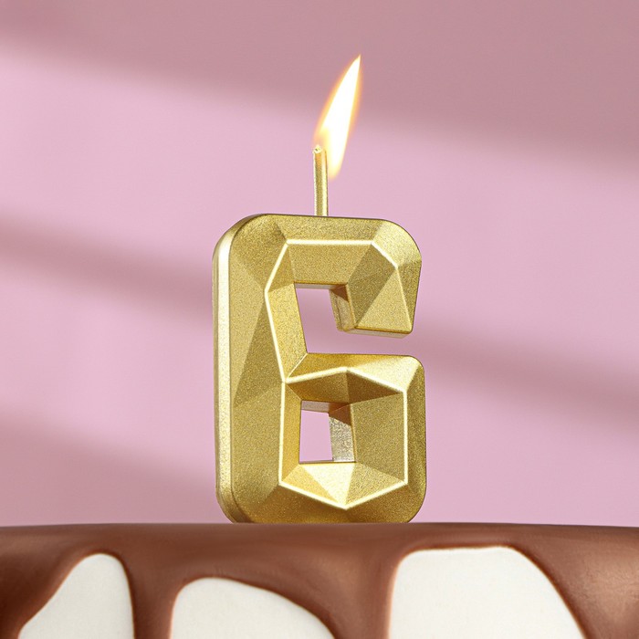 Свеча в торт на шпажке «Алмаз», цифра "6", золотая, 4,8х2,6 см