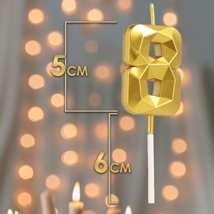 Свеча в торт на шпажке «Алмаз», цифра 8, золотая, 5 см